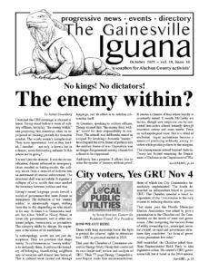 The Gainesville Iguana is a semi-monthly progressive newsletter and calendar of events which first began publishing in October 1986. Through its calendar, directory of organizations, and content, it fosters the growth of movement consciousness and community organizing on issues from local to international.